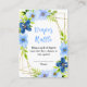 This beautiful and elegant diaper raffle enclosure card features watercolor baby blue and navy blue flowers with foliage on a gold geometric frame. The text combines handwritten script and serif fonts for a stylish and modern look. This is perfect for a spring or summer rustic baby shower.