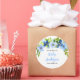 This beautiful and elegant baby shower bookplate sticker features watercolor baby blue and navy blue flowers with foliage. The text combines handwritten script and serif fonts for a stylish and modern look. This is perfect for a spring or summer rustic baby shower.