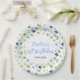 This beautiful and elegant plate features watercolor baby blue and navy blue flowers with foliage. The text combines handwritten script and serif fonts for a stylish and modern look. This is perfect for a spring or summer rustic birthday party.
