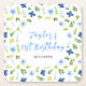 This beautiful and elegant coaster features watercolor baby blue and navy blue flowers with foliage. The text combines handwritten script and serif fonts for a stylish and modern look. This is perfect for a spring or summer rustic birthday party.