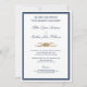 Navy and Gold Elegant Formal Wedding Invitation designed with a navy trim border on a white background with navy script text and gold colored accents. The front text includes: The Bride and Groom's Parents Names - Request the Honor of Your Presence at the Wedding of Their Children, the Bride's Name, The Groom's Name, The Wedding Date, Time, Location Name and Address, The Reception Location, Address and Time. The reverse side text includes: The Bride and Groom's First Names and Wedding Date on a navy background with gold colored accent. To personalize, simply insert your details into our easy template, replacing the sample text. Be sure to view the complete Navy and Gold Elegant Wedding collection for matching cards and accessories.