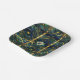 Dieses Design zeichnet sich durch einen zauberhaften dunkelmarineblauen, schwarzen, aquamarinen, grünen und goldenen Wald mit verflochtenen Bäumen aus, der bis zum Himmel reicht, jeder von ihnen sieht ein bisschen wie der Baum des Lebens aus. Das Muster wird mit einem farbigen Glaseffekt wiederholt, und der goldene schimmernde Mond wiederholt sich in jeder Tafel. Goldene Scroll-ähnliche Trennlinien trennen jedes Panel. Ihr Anfang erscheint in tiefblau gegen eine goldene Rautenform, die aquamarin umkreist ist.
