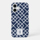 Navy Bamboo Lattice Muster Monogram iPhone 16 Hülle