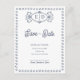 Navy Blau Crest Monogram Hochzeit Save the Date Ankündigungspostkarte