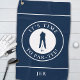 Bringe spielerische Persönlichkeit in sein Golfspiel mit diesem True Navy Blue Herrengolfhandtuch. Eine klassische Silhouette eines männlichen Golfers ist in einem weißen Kreis zentriert, umrahmt von dem gebogenen Satz „It’s Time To Par‑Tee!“. Das untere Panel bietet Platz für ein individuelles Monogramm - Initialen, Name oder kurzer Text - nahtlos an das Design angepasst.