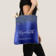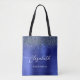 Diese elegante moderne Brautjungfer-Tasche hat einen navyblauen falschen Glitter-Rahmen. Fügen Sie ihren Namen in weißer Handschrift und das Wort "Brautjungfer" oder einen anderen Titel in serifenloser Schrift auf einem blauen falschen gebürsteten Metallhintergrund hinzu.