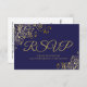 Navy Blau mit Elegant Gold Lace Wedding RSVP Karte