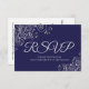 Navy Blau mit eleganter Silver Lace Hochzeit RSVP Karte