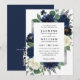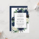 Navy Blau und Silber Blumen QR-Code Hochzeit Einladung