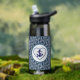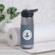 Navy Blau / Weiße Blüte mit Ankerwasser Flasche