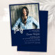 Foto moderne minimalistisch marinalblau und weiß 30. Geburtstag Party Einladung für eine lustige Geburtstagsparty. Das Alter kann geändert werden. Diese Einladung ist einfach und elegant, erwachsenen Meilenstein Geburtstagseinladung für Männer und Frauen. Die marineblau-weiße Hintergrundfarbe kann mit dem Design-Tool in eine beliebige Farbe Ihrer Wahl geändert werden.