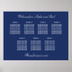 Navy Blue 7 Table Wedding Chart Poster, bitte personalisieren Sie die Namen des Paares und die Namen der Gäste zusammen mit jedem anderen Text, den Sie vielleicht personalisieren möchten. Eine elegante Sitzkarte mit stilvollem weißem Text auf marineblau.