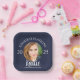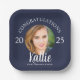 Moderne marineblaue "Herzlichen Glückwunsch" Klasse von 2025 Abschluss Papier Platte, personalisiert mit einem Foto, den Namen, Schule und Abschluss Jahr des Absolventen. Ideal für Absolventen der Gymnasialschule oder Uni. Der marineblau Hintergrund kann mit Zazzle Designwerkzeugen mit eigenen Schulfarben angepasst werden. Kontaktieren Sie mich, um Hilfe bei Ihren Anpassungen zu erhalten oder um zusätzliche Matching oder Koordination von Zazzle Produkten anzufordern.