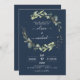 Navy Blue All in One Eucalyptus QR Code Wedding Einladung