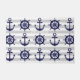 Dieses dekorative Design besticht durch einen dunkelmarineblau Anker und ein Bootrad mit grauen und weißen Streifen. Die nautische Illustration schafft eine moderne und einzigartige Türmatte mit personalisiertem Text und beliebter Hintergrundfarbe.