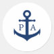 Navy Blue Anchor Monogram Nautical Wedding Runder Aufkleber