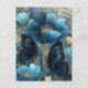 Navy Blue and Gold Butterfly with Teal Flower Postkarte
