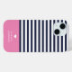 Navy Blue and Pink Chic Stripes Heftmonogramm Case-Mate iPhone Hülle
