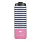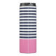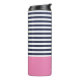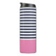 Navy Blue and Pink Chic Stripes Heftmonogramm Thermosbecher