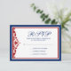 Navy Blue and Red Blüh RSVP Karte