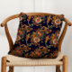 Ein buntes, Vintages Paisley-Design mit rot-orangefarbenen Paisley-Dekorationen Set vor einem dunkelblauen Hintergrund.