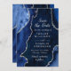 Navy Blue and Silver Agate Marble Save The Date Einladung