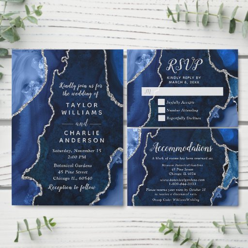 Navy Blue and Silver Agate Marble WeddingDesignt von Kirsty W