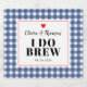 The perfect custom decor accent for an I Do BBQ engagement party, couple's shower or rehearsal dinner this beer bottle label has the couple's names and wedding date plus a fun play on words, "I Do Brew" all against a classic country motif of a navy blue and white gingham check pattern.
