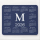 Navy Blue and White Monogram 2026 Calendar Mousepad