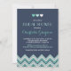 Gemütliche marineblaue Einladung mit Aqua-Zickzacktönen. Zickzack Muster unten und das ganze Muster auf der Rückseite der Einladungskarte. Ein einfaches und minimales Design für Ihren besonderen Tag. Passen Sie den Wortlaut für jede Gelegenheit wie Babydusche, Brautparty, Hochzeit, süße 16, Abschluss, Geburtstagsparty, Verlobungsfeier, Junggeselinnen-Abschied und mehr an.