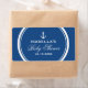 Maßgeschneiderte, blaue und weiße Wasserduschflaschen-Etiketten mit einem kleinen Anker. Personalisierte elegante DIY Wasserflaschenaufklebervorlage mit Schiffsankern weg. Stilvolle Skripttypografie für den Namen und das Geburtsdatum von Mädchen oder Jungen. Nutzen Sie die klassische maritime Tischdekoration oder danken Sie für die Gäste des Party. Neutrales Vorlagendesign mit anpassbarer Hintergrundfarbe, d.h. pastellblau, hellgrau, lila oder weichgelb. Sailor Thema.