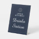 Dieses elegante Marineblach-Stationsschild mit Graduierungsmütze und Lorbeerkranz-Abzeichen auf einem schicken Herringbone-Muster-Hintergrund mit elegantem Schriftzeichen-Kalligraphietext, der "Drinks Station" liest. Dieses Podestschild fügt Ihrem Party eine Touch modernen Flairs hinzu. Perfekt für die Begleitung von Graduiertengästen zu Ihrer Getränkestation, harmonisch kombiniert es Stil mit Funktion und macht Ihre Veranstaltung noch unvergesslicher.