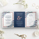 Navy Blue Blätter Branch Rose Gold Glitzer Hochzei Dreifach Gefaltete Einladung