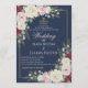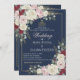 Navy Blue Blush Burgundy Floral Gold Frame Wedding Einladung