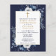 Diese moderne marineblaue erste heilige Kommunion Einladung kann mit Ihren Informationen in eleganter Typografie personalisiert werden. Entwickelt von Thisisnotme©