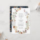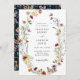 Navy Blue Boho Hochzeitseinladung. Diese stilvolle und elegante Hochzeitseinladung besticht durch herrliche, handbemalte Wildblumen in Aquarelltönen, die als hübscher Kranz mit einem hübschen Muster auf der Rückseite angeordnet sind. Finden Sie passende Artikel in der Hochzeitskollektion der Navy Blue Boho Wildblume.
