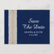 Navy Blue Burlap Lace Wedding rettet das Datum Postkarte