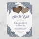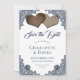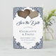 Begleiten Sie Ihre romantische marineblaue Hochzeitsfeier mit dieser herrlichen Hochzeit mit Kratzen und Spitzen und bewahren Sie die Dattelkarten mit zwei Burlherzen auf einem schlichten, weißen Hintergrund mit blühenden Marineblättern. Matching-Elemente verfügbar.