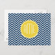 Navy Blue Chevrons mit Custom Yellow Monogram Postkarte