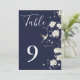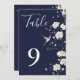 Diese modernen marineblauen und blühenden Tischnummern mit Blumengarten laden zu jeder Feier ein. Entwickelt von Thisisnotme©
