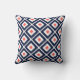 Navy Blue, Coral, White Ikat Diamond Pattern Kissen