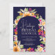 Helle Country blumenfarbene Brautdusche Einladung auf marineblau, mit einer rustikalen Touch mit blühenden Landhäusern mit hübschen Gartenlandsonnenblumen, Rose und Blume rund um den Bogen.