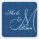 Navy Blue Damask Wedding Bride Groom Monogram Quadratischer Aufkleber