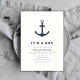 Ein Junge!, Nautical Baby Dusche Thema, feiern bevorstehende Babydusche mit unserer marineblauen rustikalen einfachen modernen nautischen Anker in beige Farbe. Sie können Ihren eigenen Text und Ihre eigene Farbe durch "Personalisieren Sie dieses Design" personalisieren.
