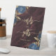 A chic, elegant sign to welcome wedding guests to your Cards and Gifts table. The words "cards" and "gifts" appear in gold-colored handwriting calligraphy with swashes at the beginning and end, with words "thank you!" below in serif font. The background features navy blue floral bouquets set off with gold faux foil foliage in two corners, on a background image of rich burgundy watercolor agate. See our collection for matching wedding invitation suite and day-of stationery.
