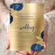 Navy Blue Floral Gold Brushed Metal Wedding Einladung