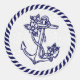 Navy Blue Floral Nautic Anchor & Wreath Runder Aufkleber