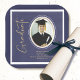 Personalisieren Sie Ihre Abschlussfeier mit dieser marineblau Papier Serviette. Es enthält Graduate in einem fett gedruckten Gold-Skript. Ein Oval aus Gold, Navy und Weiß umrahmt ein Bild des Absolventen. Die Tagesdetails können individuell angepasst werden. Die Farben sind perfekt für Krankenpfleger und Absolventen medizinischer Schulen.
