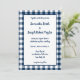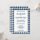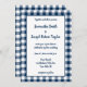 Erstellen Sie Ihre eigenen personalisierten dunkelmarineblauen, blauen und weißen Gingham karierten Muster Hochzeitseinladungen. Passen Sie die dunkelmarineblau Hintergrundfarbe an, um sie Ihrer Farbpalette anzupassen. Sie können auch einen anderen modernen Kalligraphie-Schriftart-Stil versuchen, um den persönlichen Stil der Braut und Bräutigam zu entsprechen. Der blaue Rahmen und die weiße Farbe des rechteckigen Überspiels können angepasst werden.