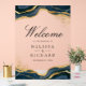 Elegant wedding welcome sign featuring a beautiful fluid abstract design.